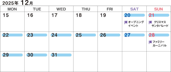 | 21 Sun | 8:30~16:30 | クリスマスサンタパレード | |