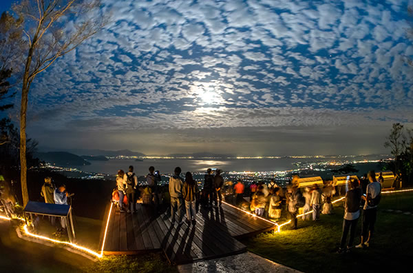 山頂の展望台まで登ると、ピンクのお花畑とその先にびわ湖が広がる雄大な景色をお楽しみ頂けます。
