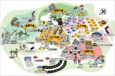 JR近江高島駅から鴨川沿いに登ること約13km、 比良山系の武奈ケ岳北部に広がるアウトドアプレイゾーン。7mの身長を持つ村のシンボル、銅製のガリバー像がお出迎え。夢と冒険心をかりたてる「おとぎの国」が、ガリバー青少年旅行村です。村内では、シーズンを通して様々なイベントや自然体験が楽しめます。
