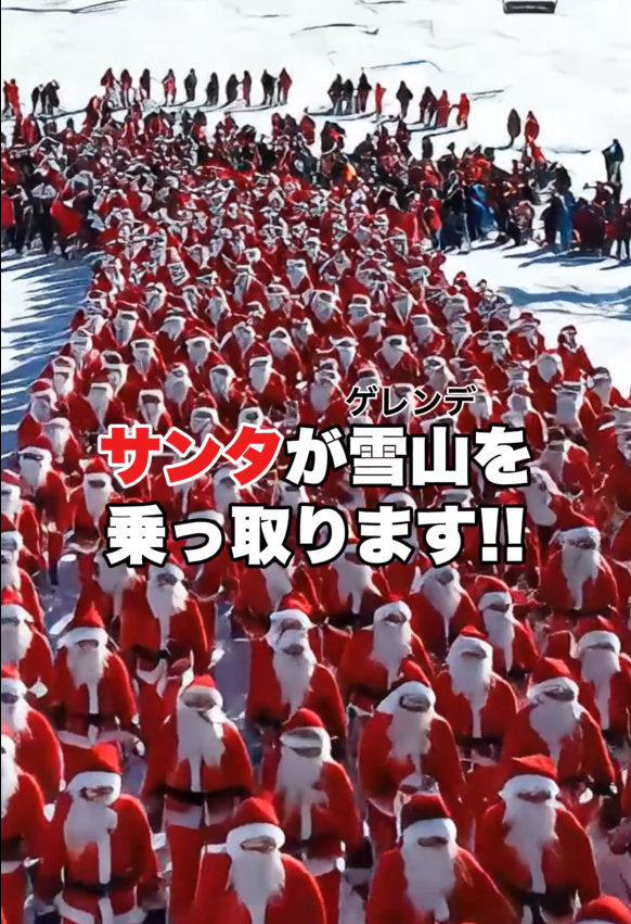 今年もゲレンデを100人のサンタに仮装して滑走!