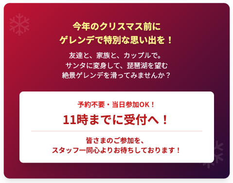 サンタに変身して、琵琶湖を望む絶景ゲレンデを滑ってみませんか?